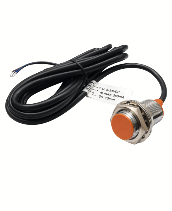 Sensor magnético PNP NA BSM18-31010PA, código 5225, indicado para detecção por campo magnético em aplicações de automação industrial. Possui corpo cilíndrico metálico M18, saída PNP normalmente aberta e conexão por cabo, sendo adequado para máquinas, dispositivos e sistemas de posicionamento.
