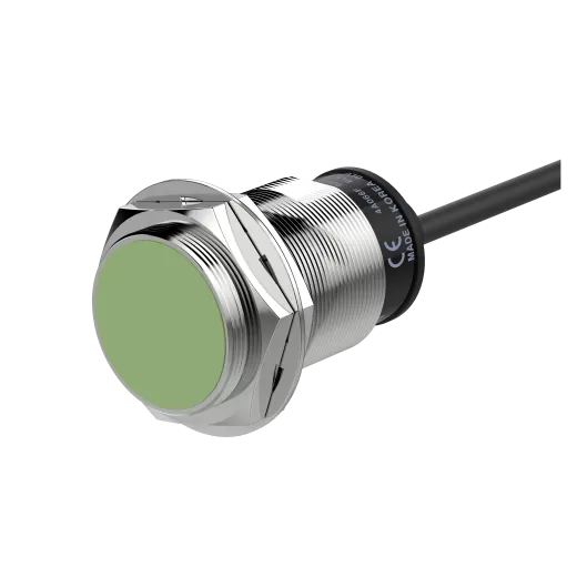 Sensor de proximidade indutivo cilíndrico para detecção sem contato de objetos metálicos, usado em automação industrial para contagem, presença, posicionamento ou como substituto de chaves fim de curso. Detecta a aproximação de peças sem desgaste mecânico, com operação estável e repetitiva
