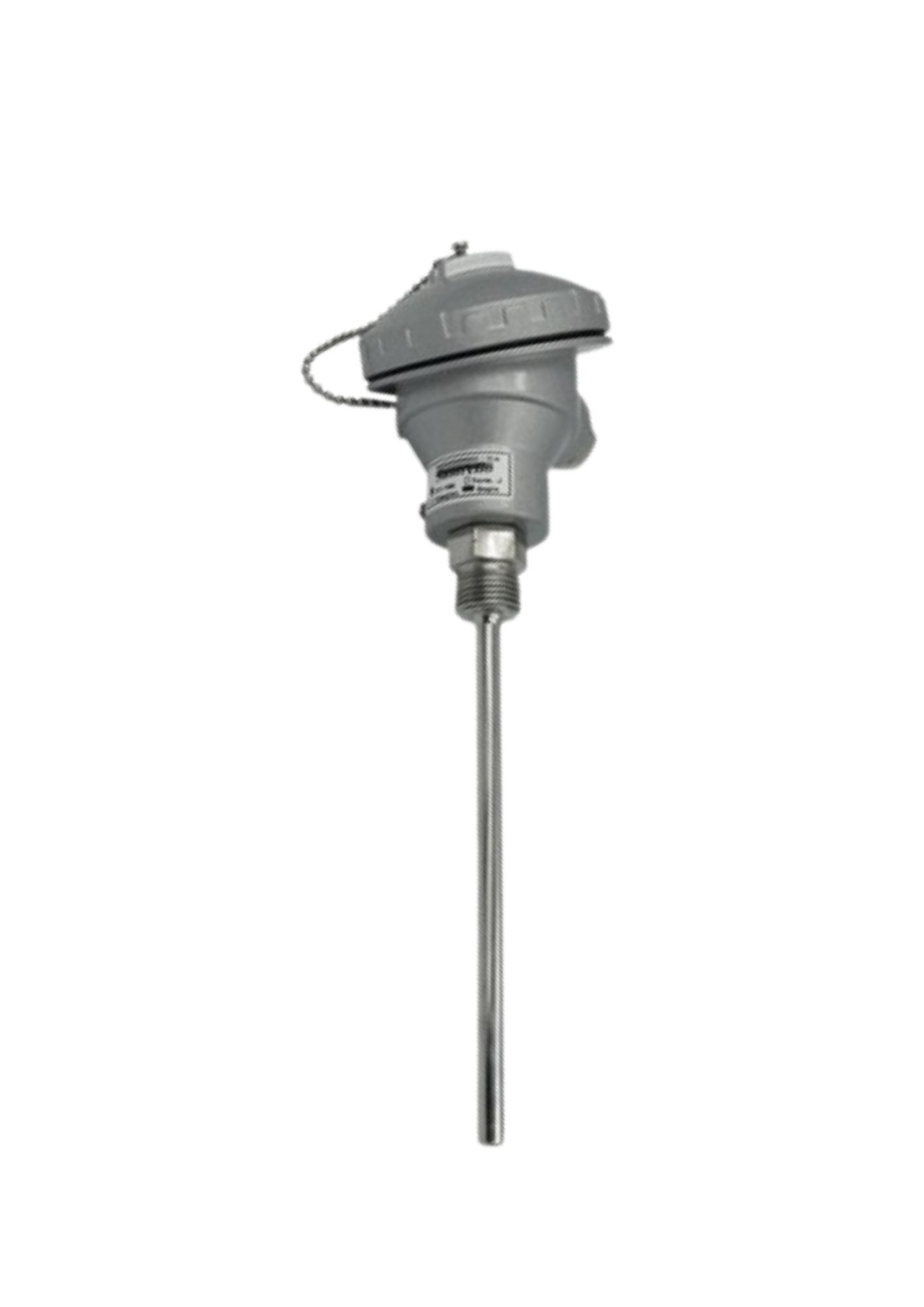 Sensor de temperatura tipo Pt100 industrial, indicado para medições em processos industriais.