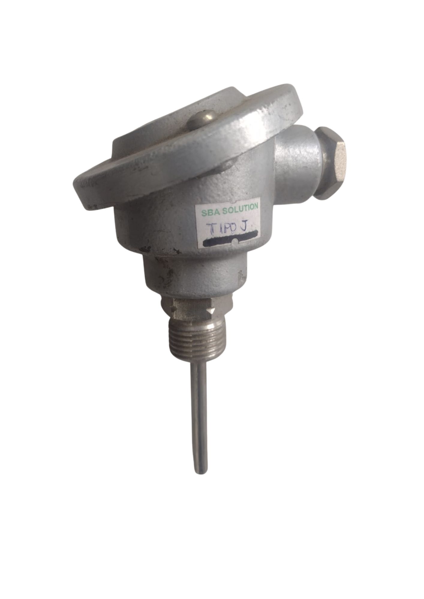 Sensor tipo J com haste de 50×6 mm e rosca 1/2”, equipado com cabeçote SAM, indicado para medições industriais de temperatura com resposta rápida e boa durabilidade.