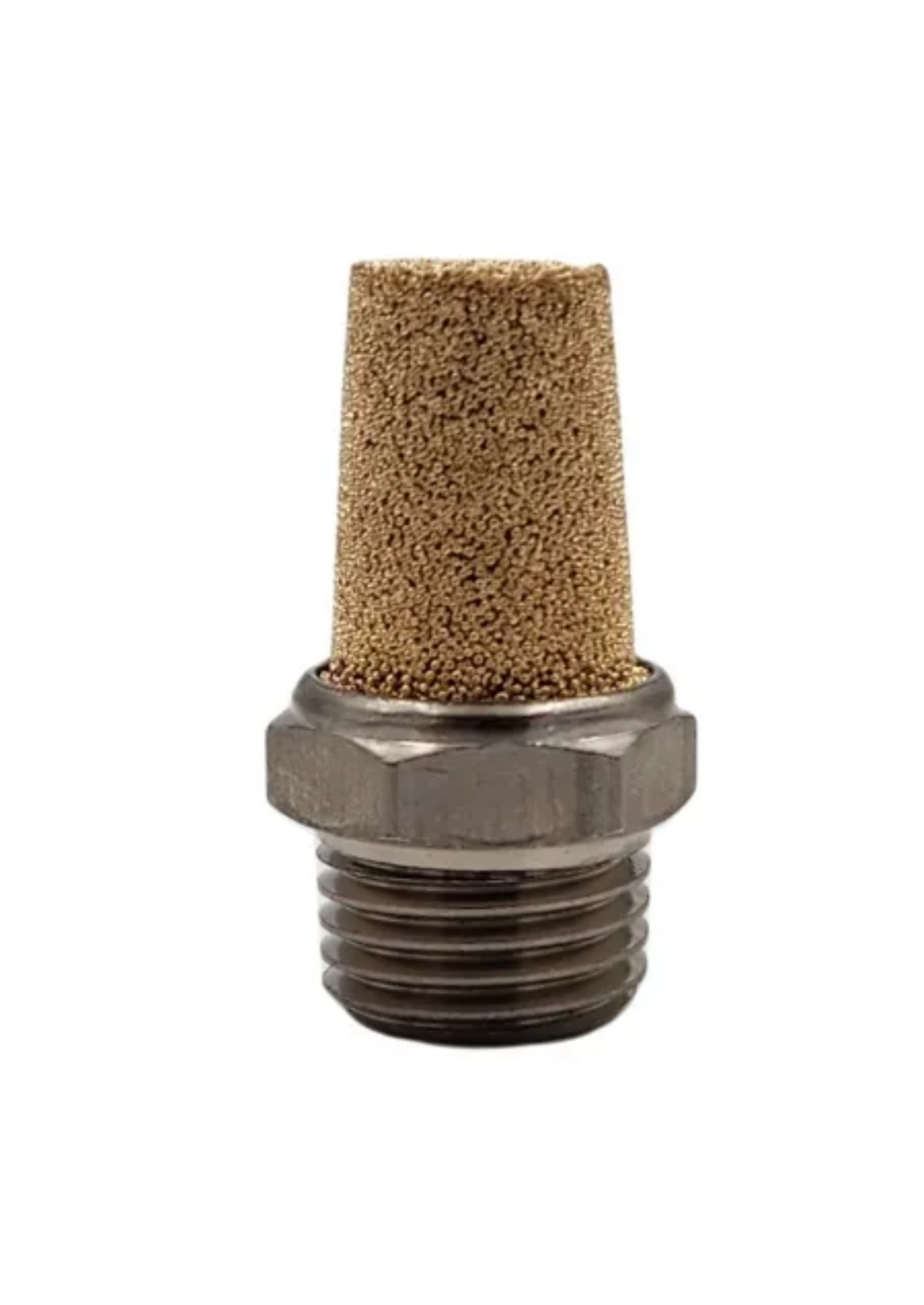 Silenciador cônico em bronze 1/8” BSL01, indicado para redução do ruído gerado pelo escape de ar em sistemas pneumáticos. Seu design cônico aliado ao material em bronze garante boa dissipação sonora, resistência mecânica e longa vida útil, sem prejudicar a vazão do ar.