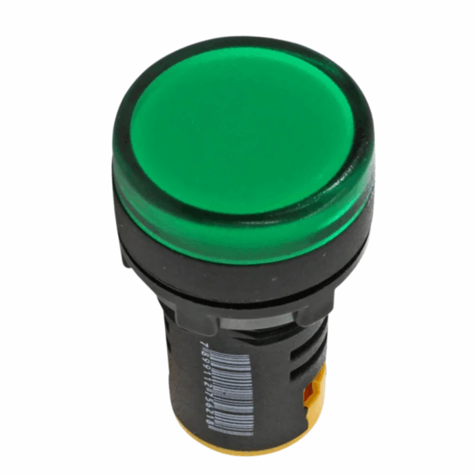 O L20-AR7-GP é um sinaleiro LED de 22 mm, projetado para fornecer indicação visual em painéis de controle e sistemas de automação. Com iluminação na cor verde e tensão de operação de 24V CA/CC, este dispositivo é adequado para diversas aplicações industriais e comerciais.