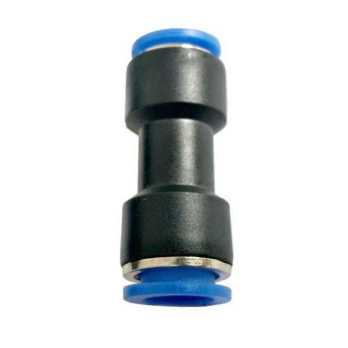 Conexão de união reta para tubos pneumáticos de 16 mm, destinada a emendar dois trechos de tubulação com rapidez e excelente vedação. Ideal para sistemas de ar comprimido de maior vazão e aplicações industriais.Produto