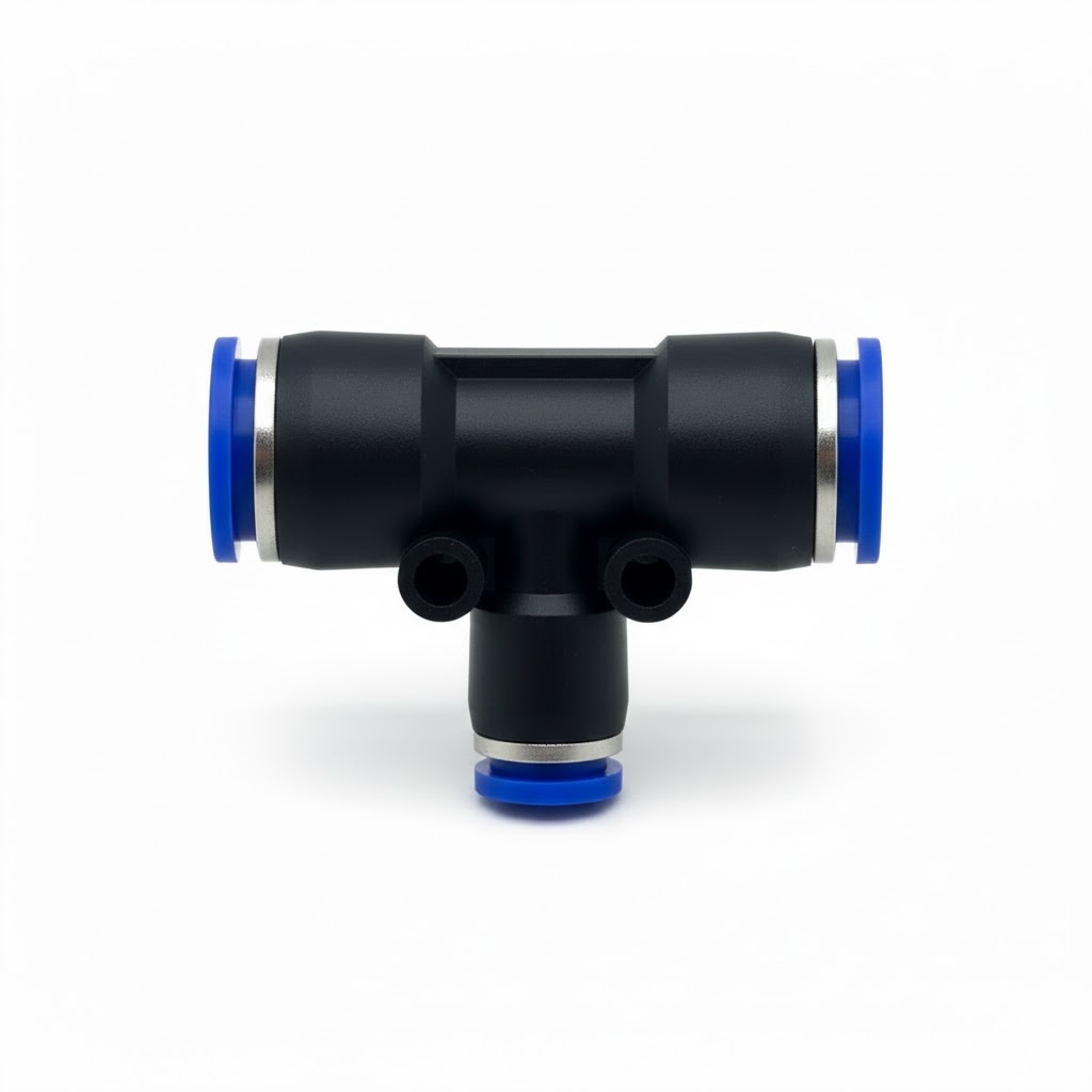 A União Tê Redução PEG080806 é uma conexão pneumática instantânea utilizada para unir três tubos de diferentes diâmetros, sendo dois na linha reta com diâmetro de 8mm e um no ramo lateral (central) com diâmetro de 6mm.Produto