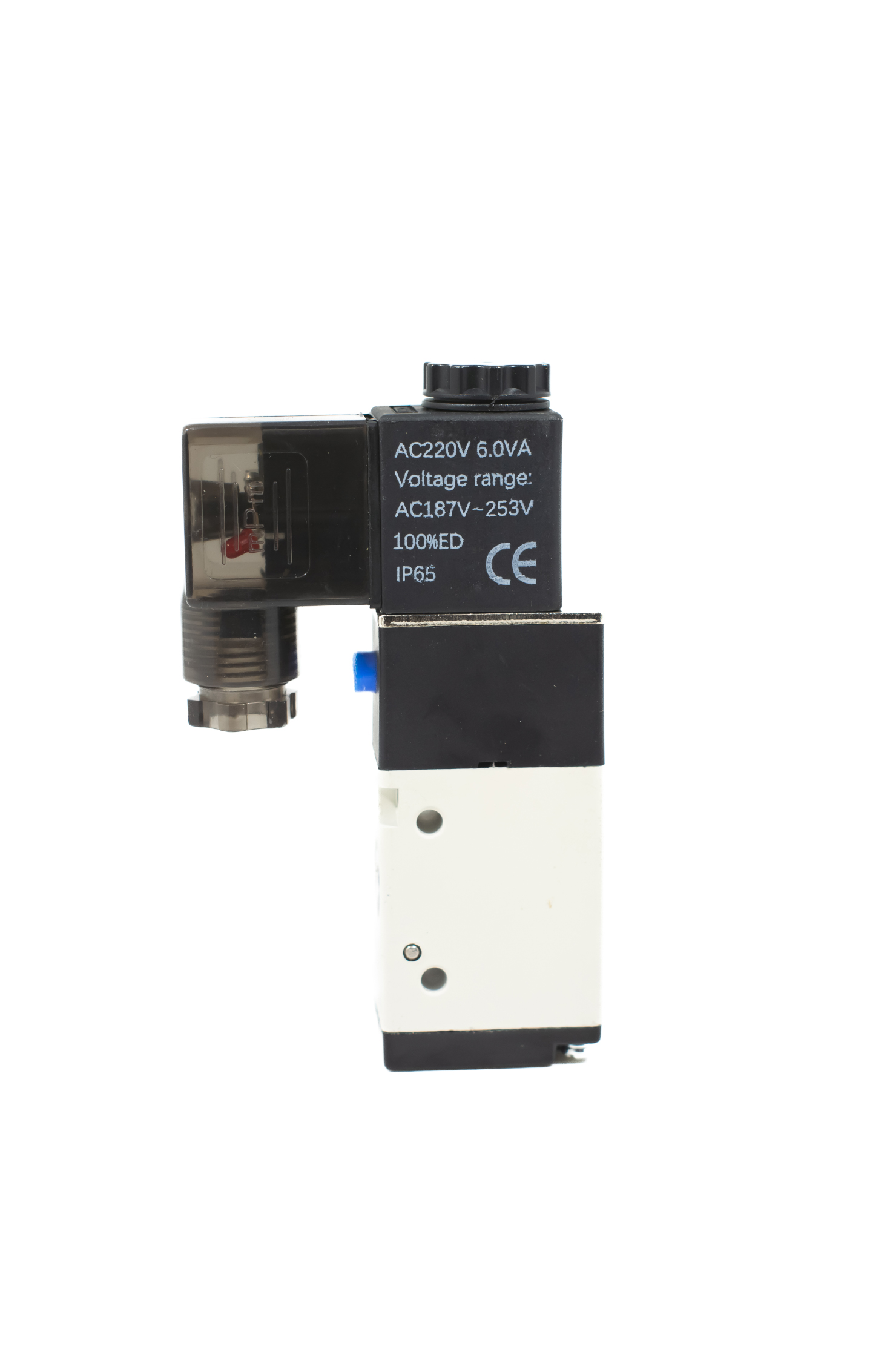 Válvula 3/2 vias com simples solenóide, conexão 1/4" BSPP e bobina 220 VAC, modelo 3V210-08, indicada para acionamento de atuadores pneumáticos em comandos industriais com resposta rápida e operação confiável.Produto