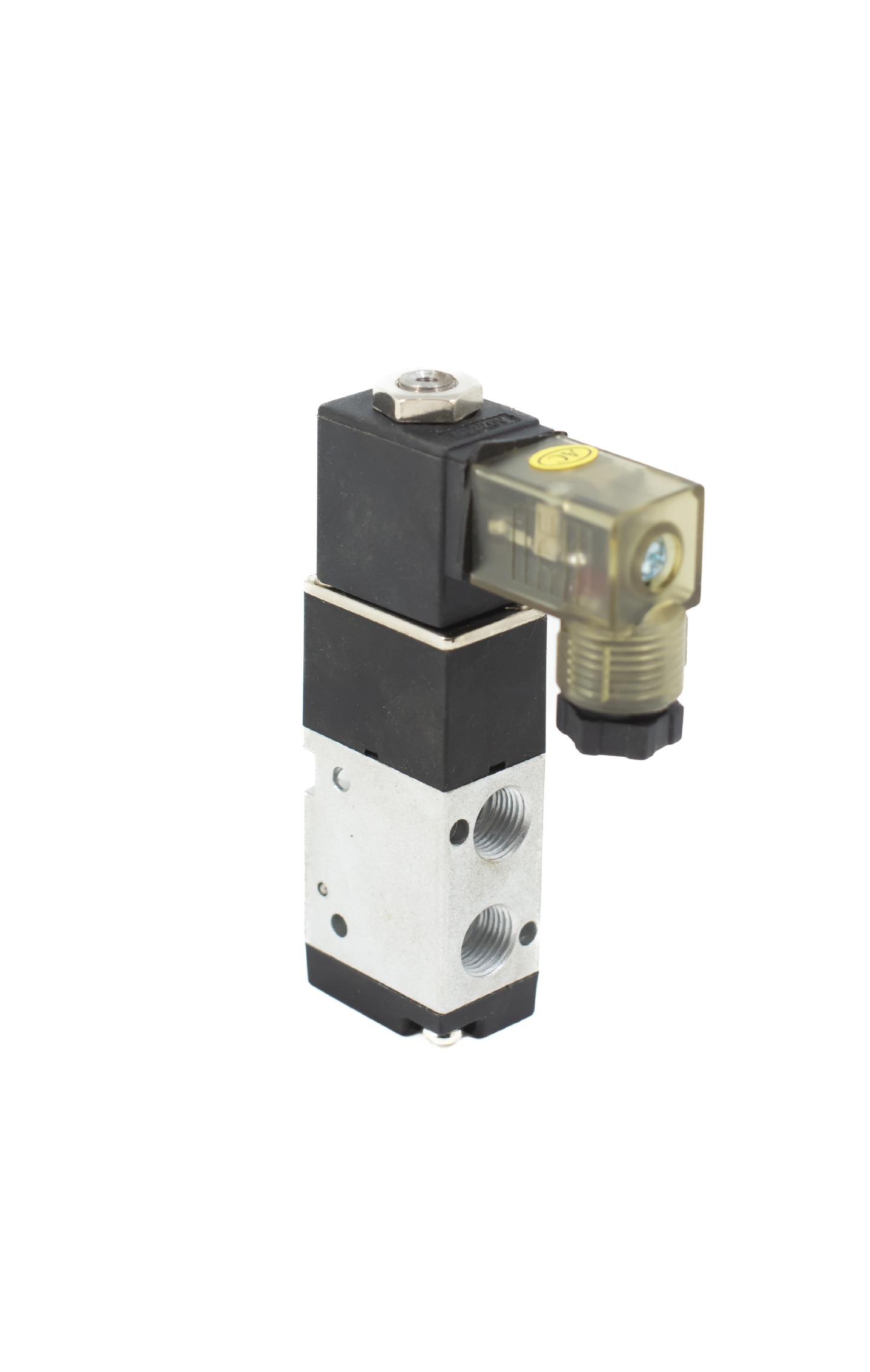 Válvula solenóide 3/2 vias com conexão 1/8" e bobina 220 VCA, indicada para controle de pequenos atuadores pneumáticos, oferecendo acionamento rápido, baixa perda de carga e operação confiável.Produto