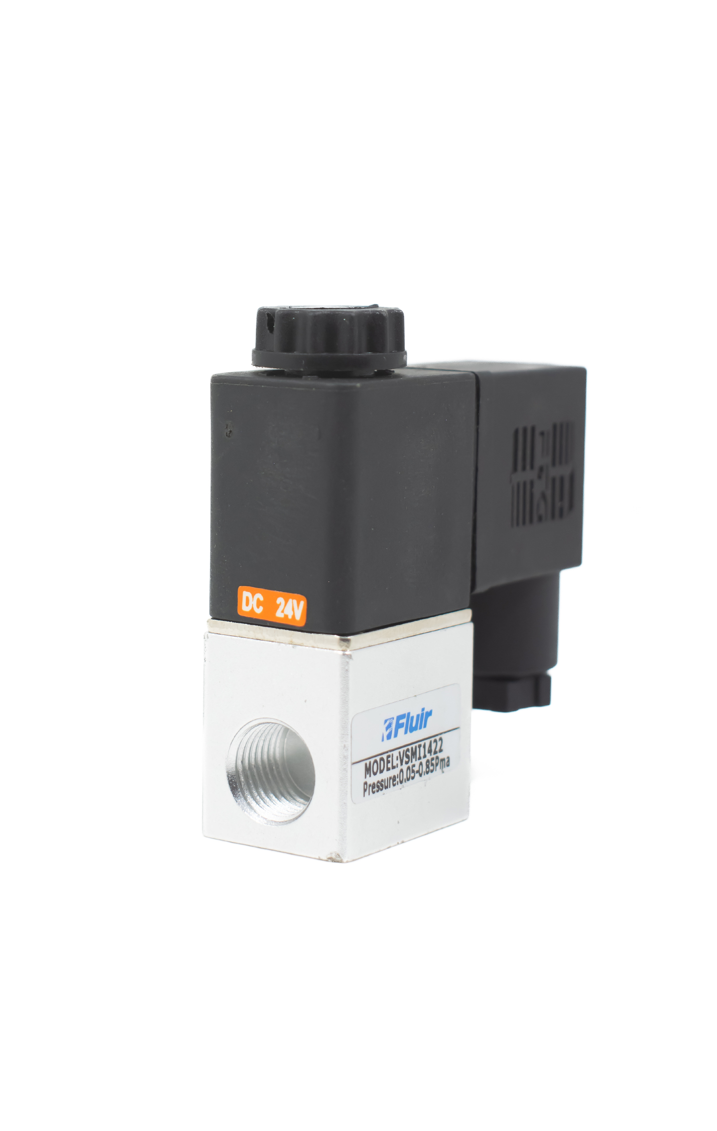 Válvula solenoide mini 2/2 vias com conexão 1/4" e bobina 24 Vcc, modelo VSMI1422E4, indicada para controle de ar comprimido em aplicações compactas, oferecendo resposta rápida, baixo consumo e operação confiável.Produto