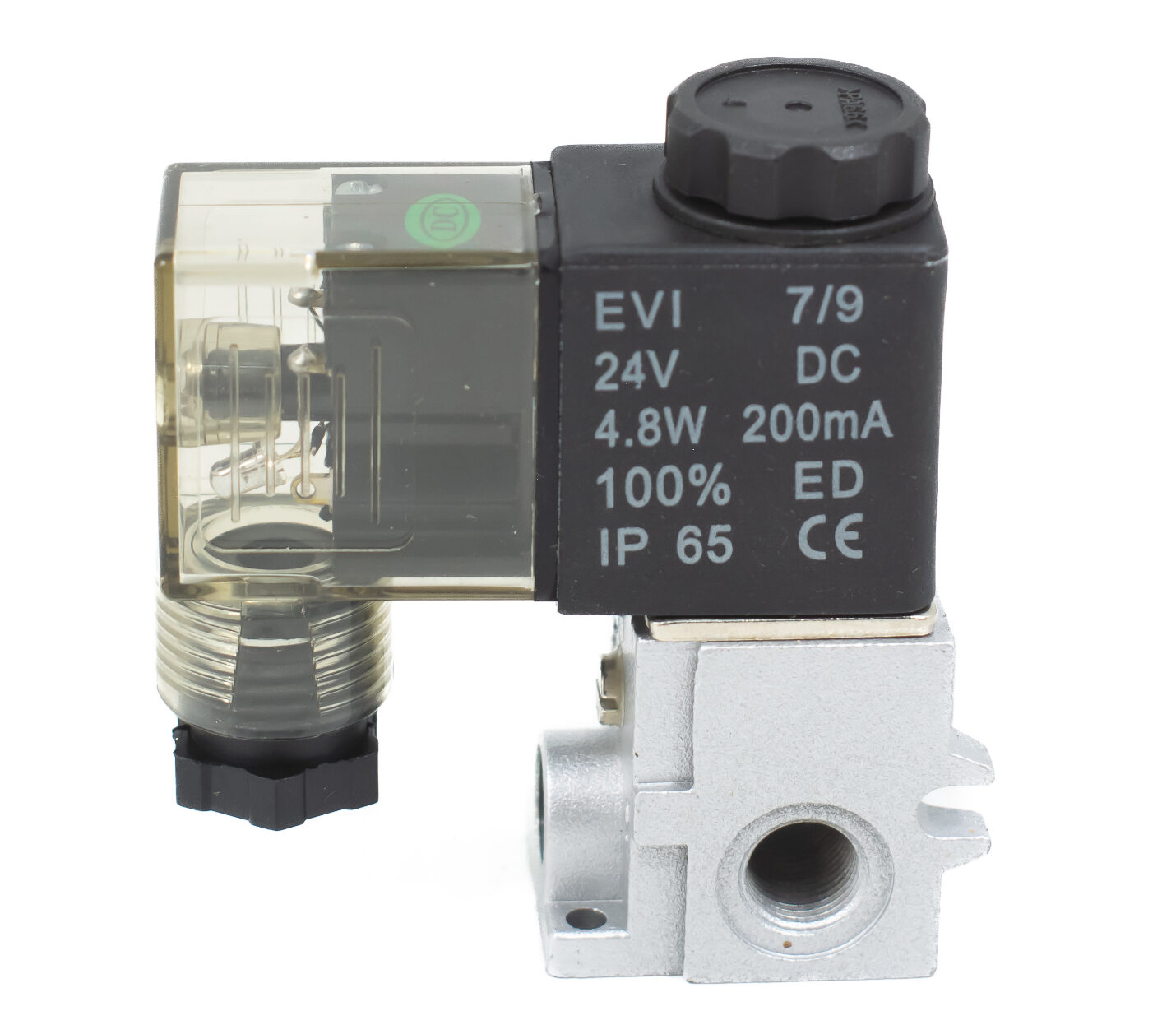 Válvula solenóide miniatura, modelo VSMI1832E4, com conexão de 1/8" e 3/2 vias, acionada por 24V CC. Compacta e eficiente, essa válvula é ideal para aplicações em sistemas pneumáticos que bloqueiam o controle de fluxo em espaços restritos, garantindo uma operação precisa e rápida.